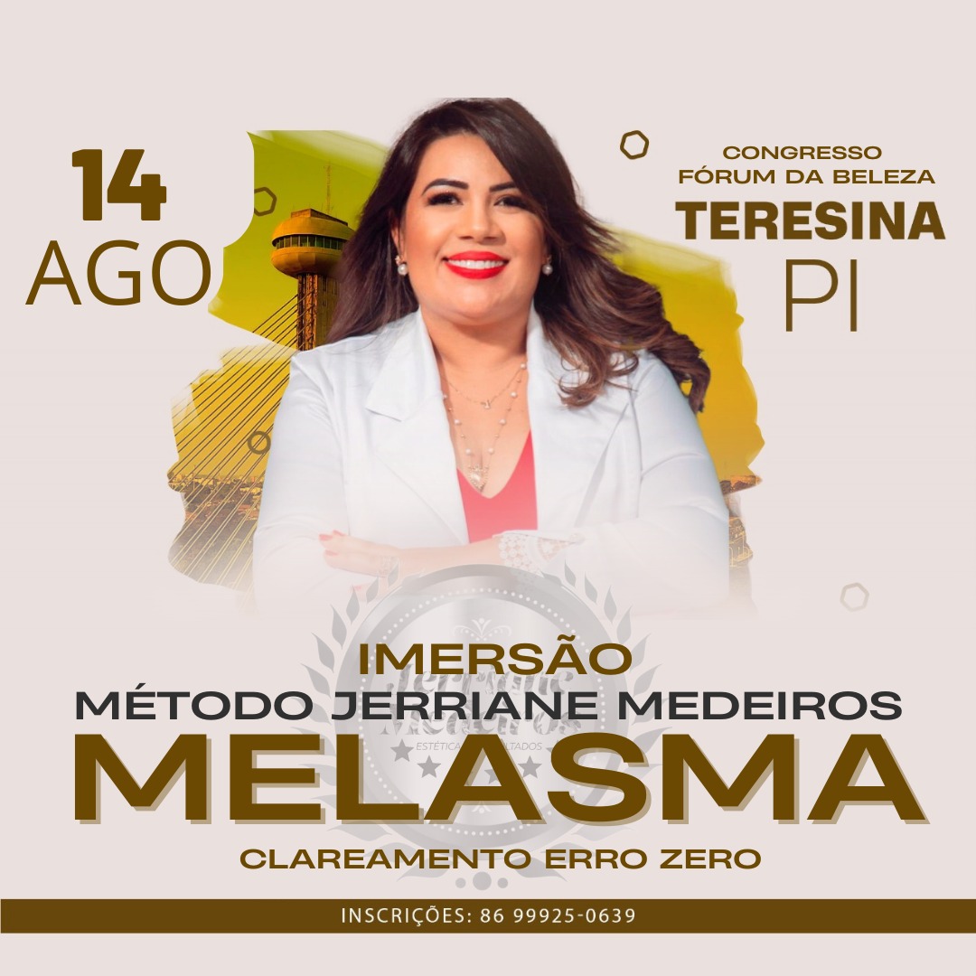 O curso da Jerriane acontecerá *dia 14/08 – Imersão em MELASMA – Clareamento ERRO ZERO – Método Jerriane Medeiros* . Esse curso contém *04 métodos faciais e 01 método corporal + Avaliação e Vendas na Estética.*